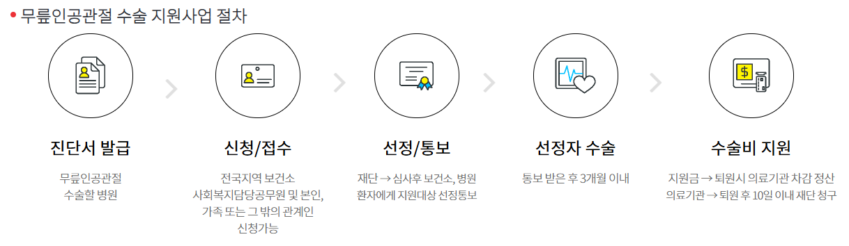 - 대상 질환 : 건강보험급여 '인공관절치환술(슬관절)' 인정기준에 준하는 질환자